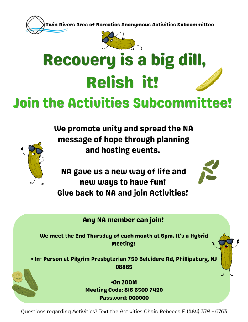 The Activities Subcommittee for the Twin Rivers Area of Narcotics Anonymous is Always Planning Great Events for NA Members! Come Back Often to Stay Informed!